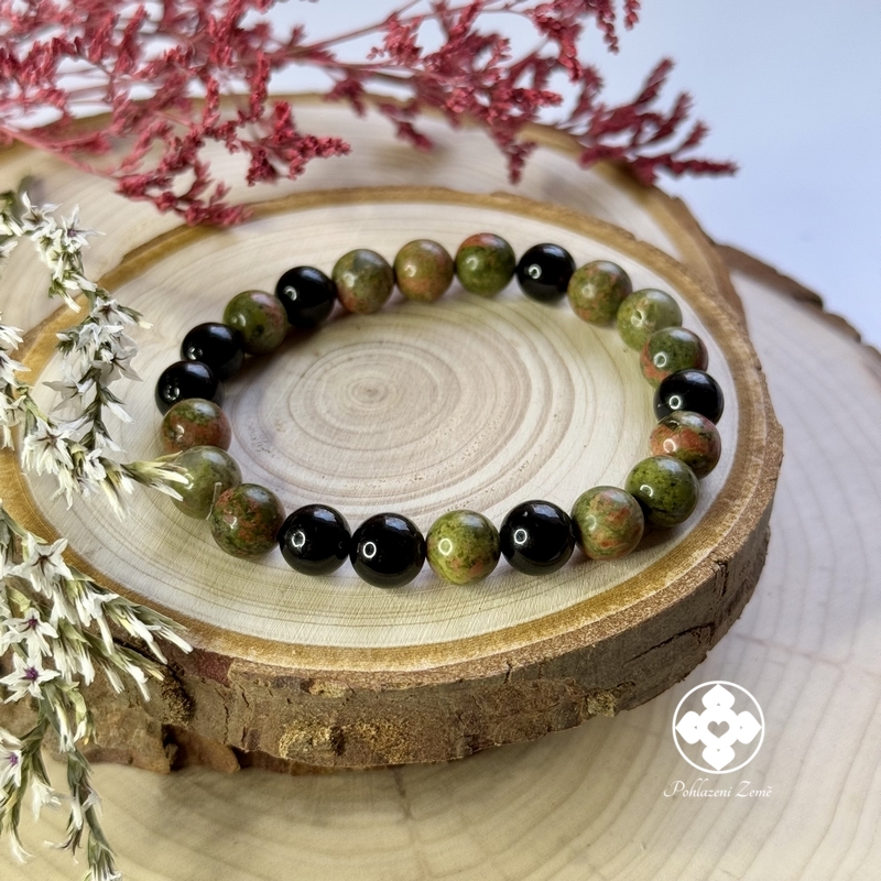 Náramek z minerálů Síla země - turmalín, unakitSkladem 4 ks349 Kč/ ks