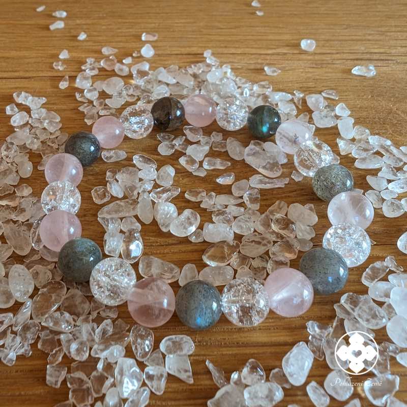 S láskou vyrobený náramek z minerálních korálků křišťálu,růženínu, labradoritu Vás podpoří v době změn a pomůže vám cítit radost ze života.